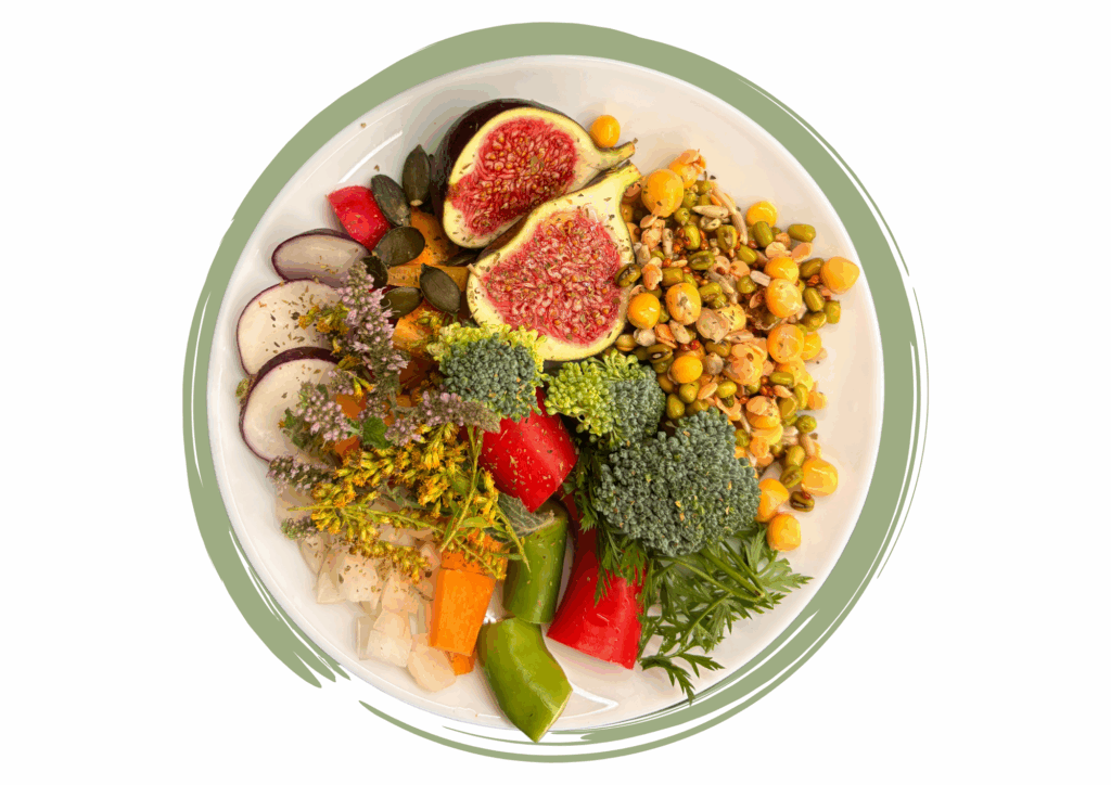 - świeże warzywa – najlepiej sezonowe, różnorodne (ok. 60% całej diety),